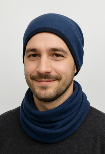 Magic Mütze Merino Strick Dunkelblau
