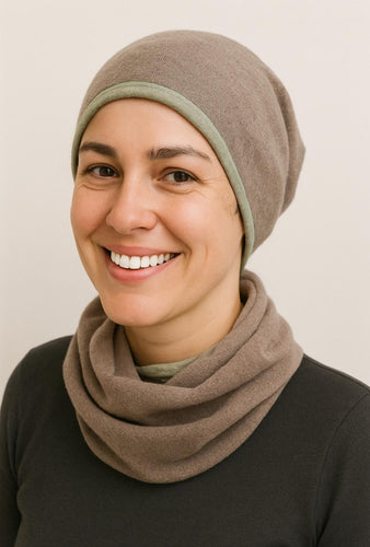 Die Magic-Mütze ist multifunktionell und auch als Wendemütze zu tragen. Ob nun als Mütze, Rundschal oder Stirnband getragen; sie sieht einfach pfiffig aus. Das Magische ist: Wenn man die Mütze oben auseinander spreizt und leicht schüttelt, verwirbelt sich die untere Öffnung und schließt sich. Sie formt den Hinterkopf attraktiv. Perfekt für Personen, die ihre Haare gerne als Dutt tragen oder die Haare zusammengebinden. Man öffnet man die Verwirbelung und lässt das Haar atmen. Angenehmer Tragekomfort.