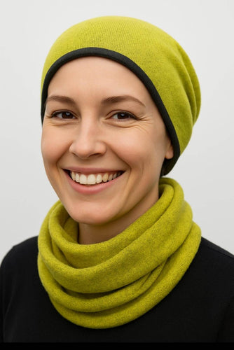 Magic Mütze Merino Strick grün-Gelb